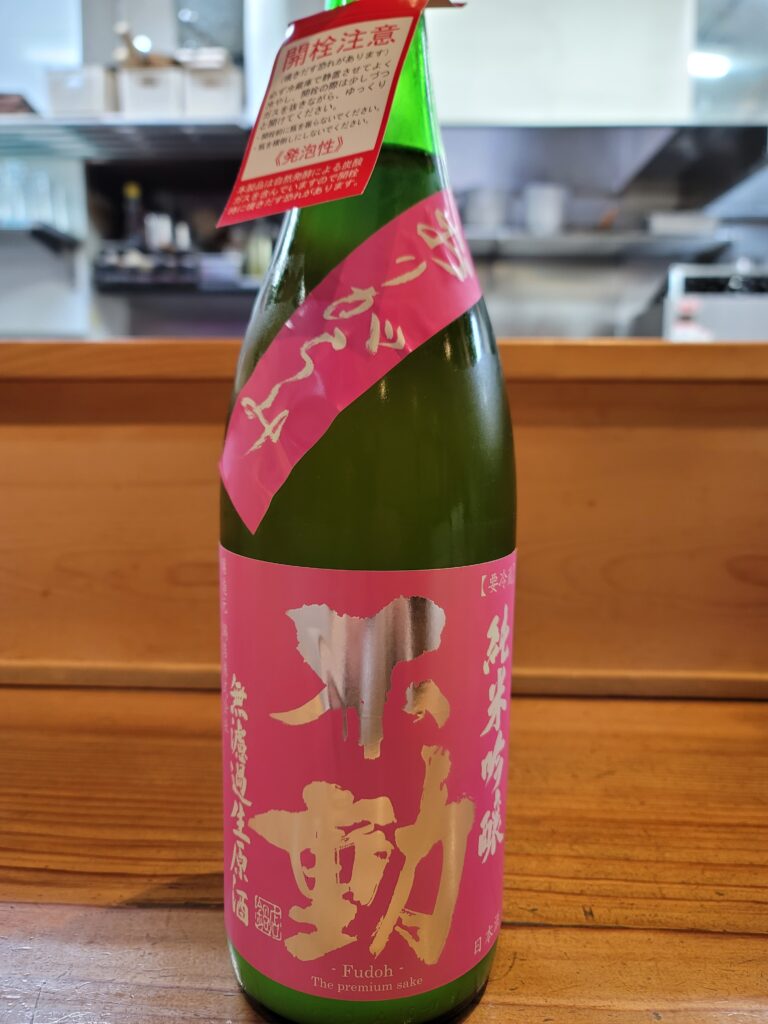 本日は千葉県、鍋店の[不動 純米吟醸 出羽燦々 おりがらみ 無濾過生原酒]‼️山形県産『出羽燦々』を100%使用したおりがらみの純米吟醸無濾過生原酒✨️春らしい甘く華やかな吟醸香がしっかりと香り、口に含むと濃厚な米の旨みが広がり、発酵由来のシュワシュワ感も豊かで、新酒ならではのとてもフレッシュな酒質に仕上がっちゃってます😋