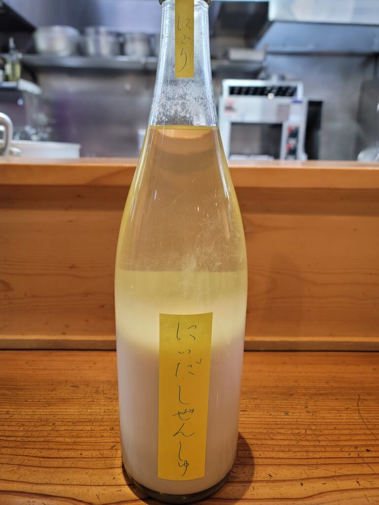 本日は福島県、仁井田本家の[にいだしぜんしゅ にごり]‼️こだわりの自然栽培米を85%精米で使用し、生もと仕込みを用い、酵母を添加せずに蔵付き酵母の力だけで発酵し、仁井田本家独自の『汲み出し四段』とゆー製法で醸した醪を昔ながらの石臼で挽き、滑らかで濃厚なにごり酒✨️ヨーグルトを彷彿させる甘酸っぱさにつきたてのお餅を思わせるふんわりとした米の香り、滑らかな口当たりから濃密に広がるにごりの旨み、飲み込んだ後はゆったりと長い余韻に飲み応え抜群の一本に仕上がっちゃってます😋
